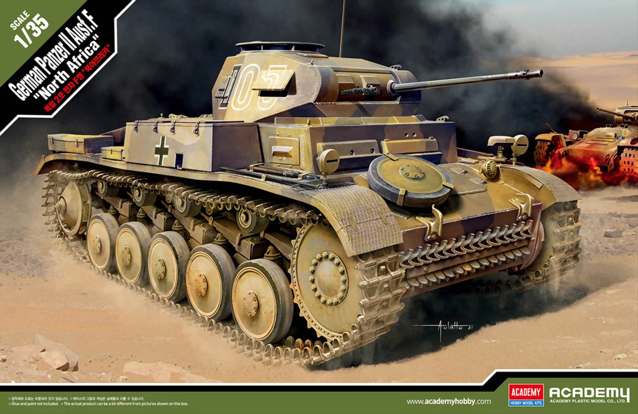 The Academy 1/35 Panzer II Ausf.F North Africa from the plastic tank model kits range accurately recreates the real life German Pz.Kpfw.II light tank from the North African theatre during World War II. This model requires paint and glue to complete.