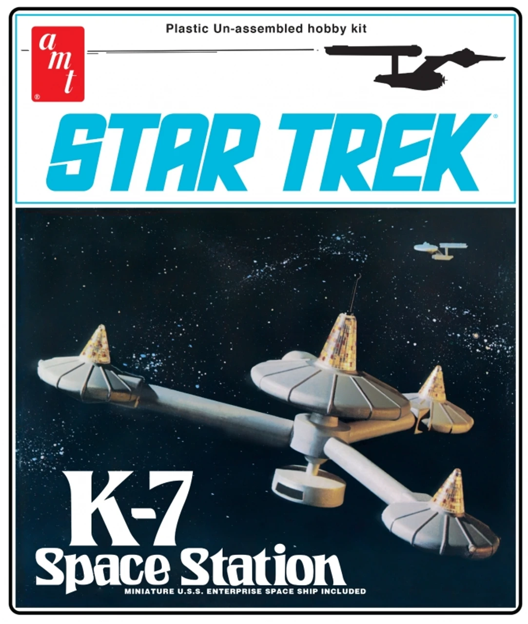 The AMT 1/7600 Star Trek K-7 Space Station from the plastic Star Trek model range accurately recreates the space station from the Star Trek original television series. This plastic model kit requires paint and glue to complete.
