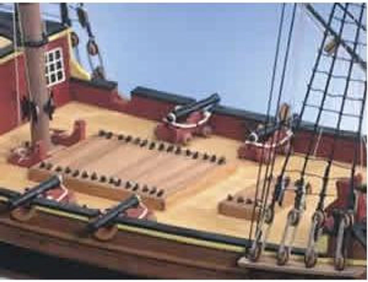 The kit of HM Brig Supply has been designed with the Novice builder in mind. The kit is extremely prefabricated with all the wooden parts CNC cut for extreme accuracy to ensure a perfect fit. Double plank on bulkhead construction, fittings include: the anchors, windows, blocks etc. Rigging thread in natural and black is included.