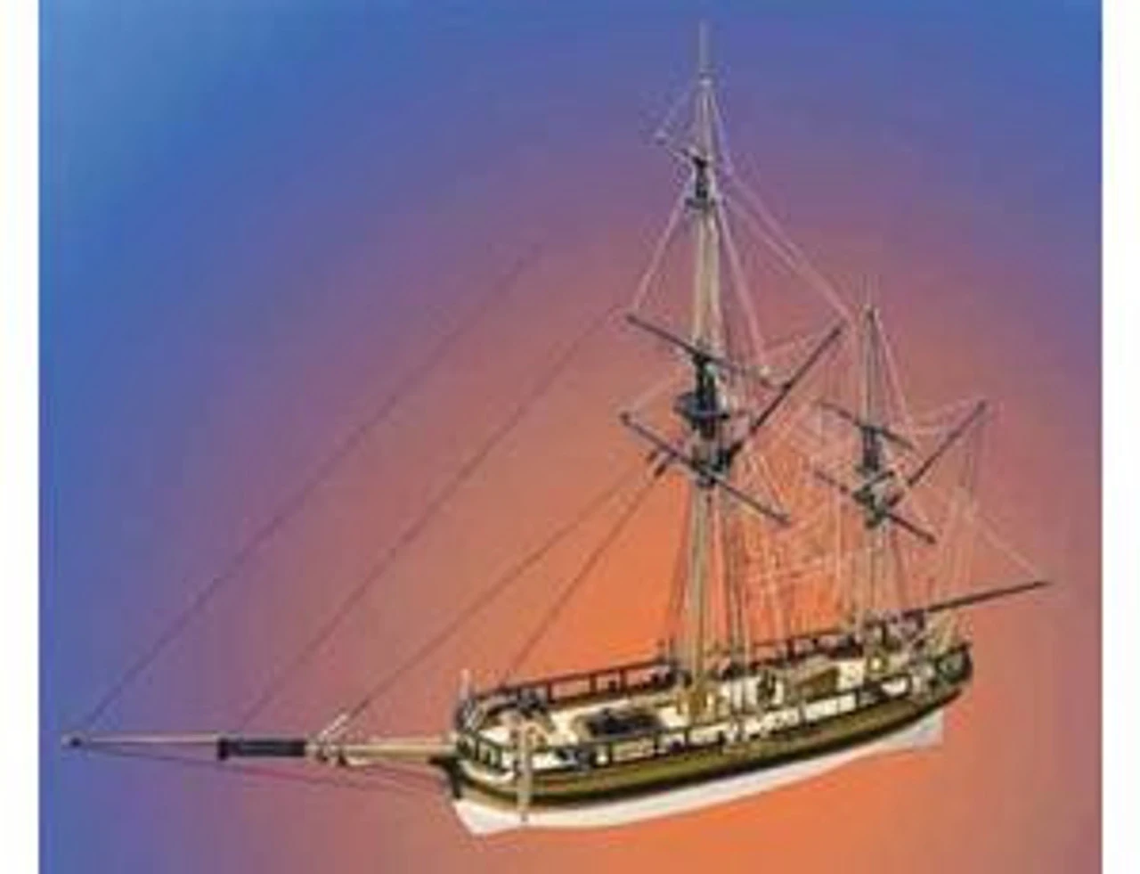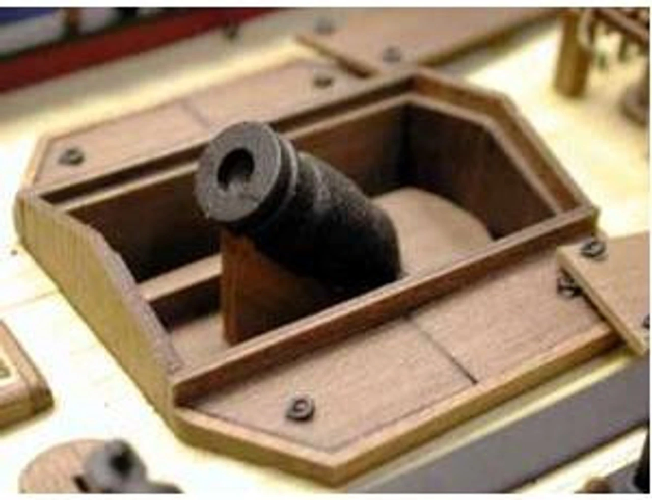 Kit includes: 10″ Mortar, Four 18pdr carronades, Walnut CNC cut parts, Double plank on bulkhead construction, Black & natural hemp for rigging. Full size plans along with a comprehensive instruction booklet make this attractive and unusual vessel ideal as an introduction to plank on bulkhead modeling. When complete this wooden boat kit measures 600mm in length, beam 200mm and with a heigth of 440mm.