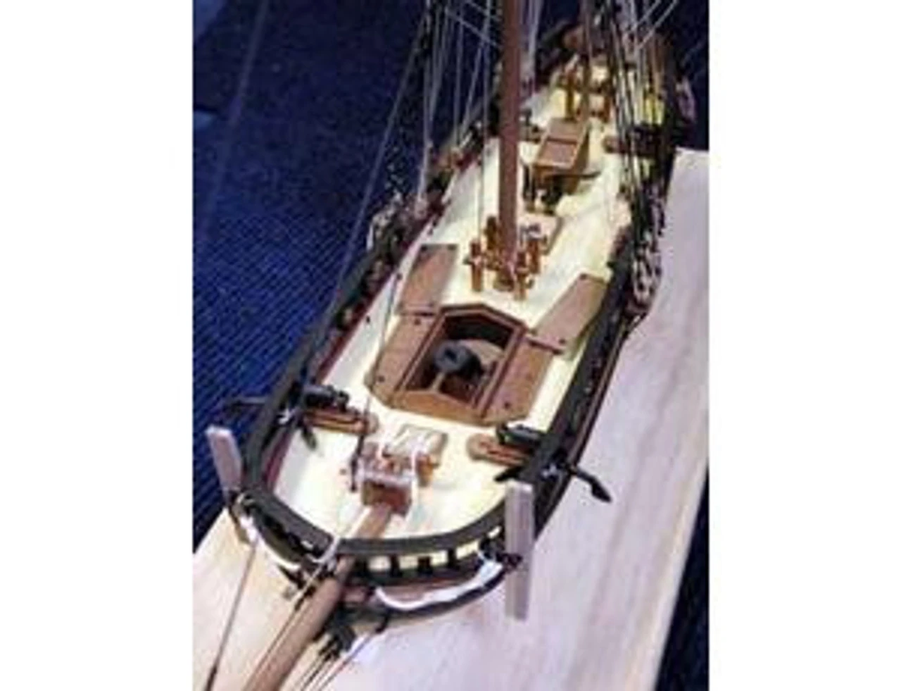 The Caldercraft HM Mortar Vessel Convulsion wooden ship model is an accurate reproduction of the real life ship. Convulsion is a ketch rigged mortar boat. She was built in 1804 at Rotherhithe and commissioned for shore bombardment duties. She was over 60ft long and had a displacement of 76 tonnes. She was armed with one 10 inch mortar and four 18 pounder carronades.