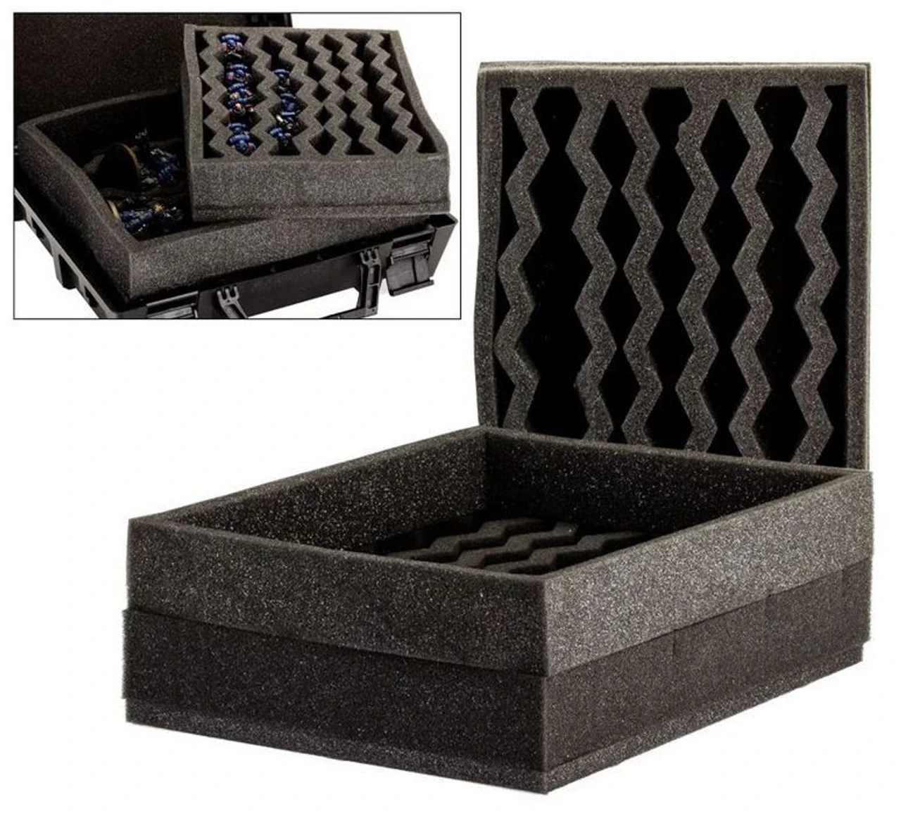 Packing and unpacking the case is absurdly quick and easy; any model, however pointy, placed anywhere within the channels will be protected as well as if you’d spent countless hours hacking away at a custom fit. You’ll free up more time to concentrate on games, painting or just showing off your miniatures collection. The channel foam is as efficient a use of space as possible, allowing you to store more models more safely than any other case. Have a look at the images or check out the video in the tab to the right to to get a taste for just how life-changingly excellent these cases are – you won’t be able to work out how you lived without them. It’s ok. Those dark times are over now.