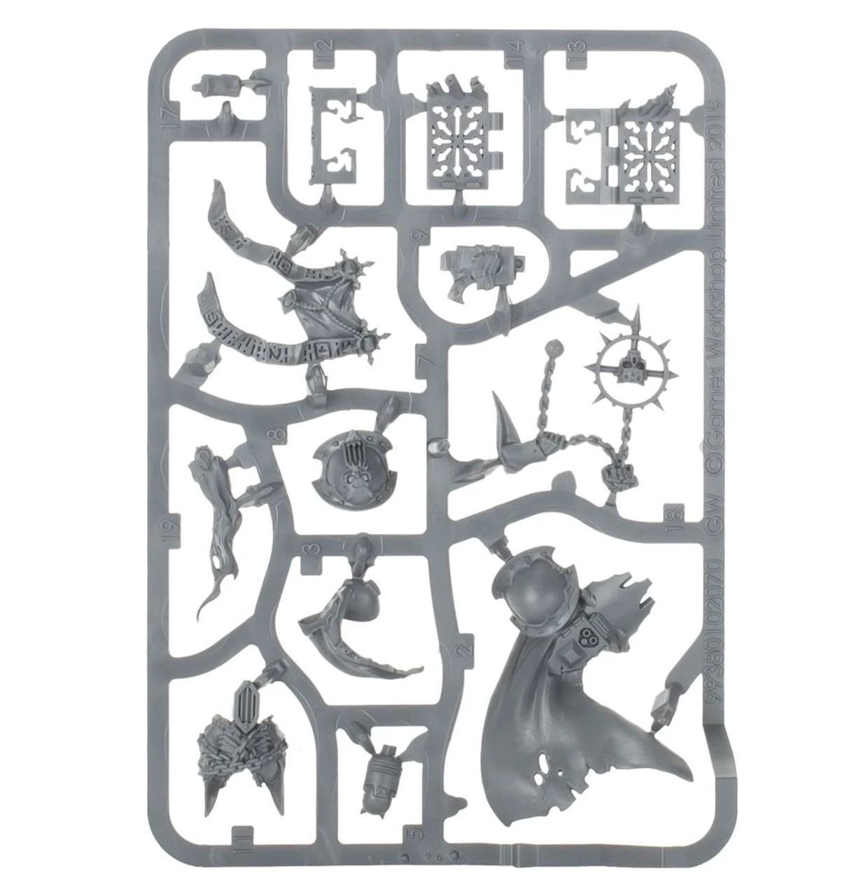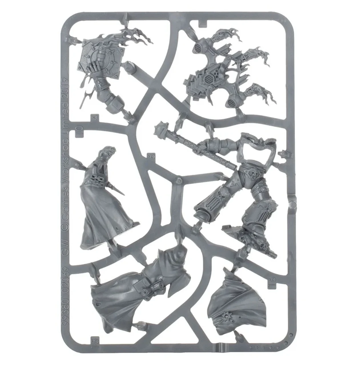 This kit builds one Dark Apostle and two Dark Disciples. It is supplied in 19 plastic components and comes with one 40mm Citadel Round Base and two 25mm Citadel Round Bases.