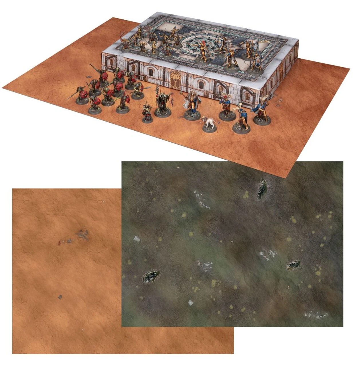 A 30″ by 22.4″ Double-sided Gaming Mat: Transform any kitchen table into a war-torn landscape of Ghur, the Realm of Beasts. One side depicts the swampland home of the Kruleboyz in Thondia, while the other represents a dusty wilderness of the Ghurish plains.