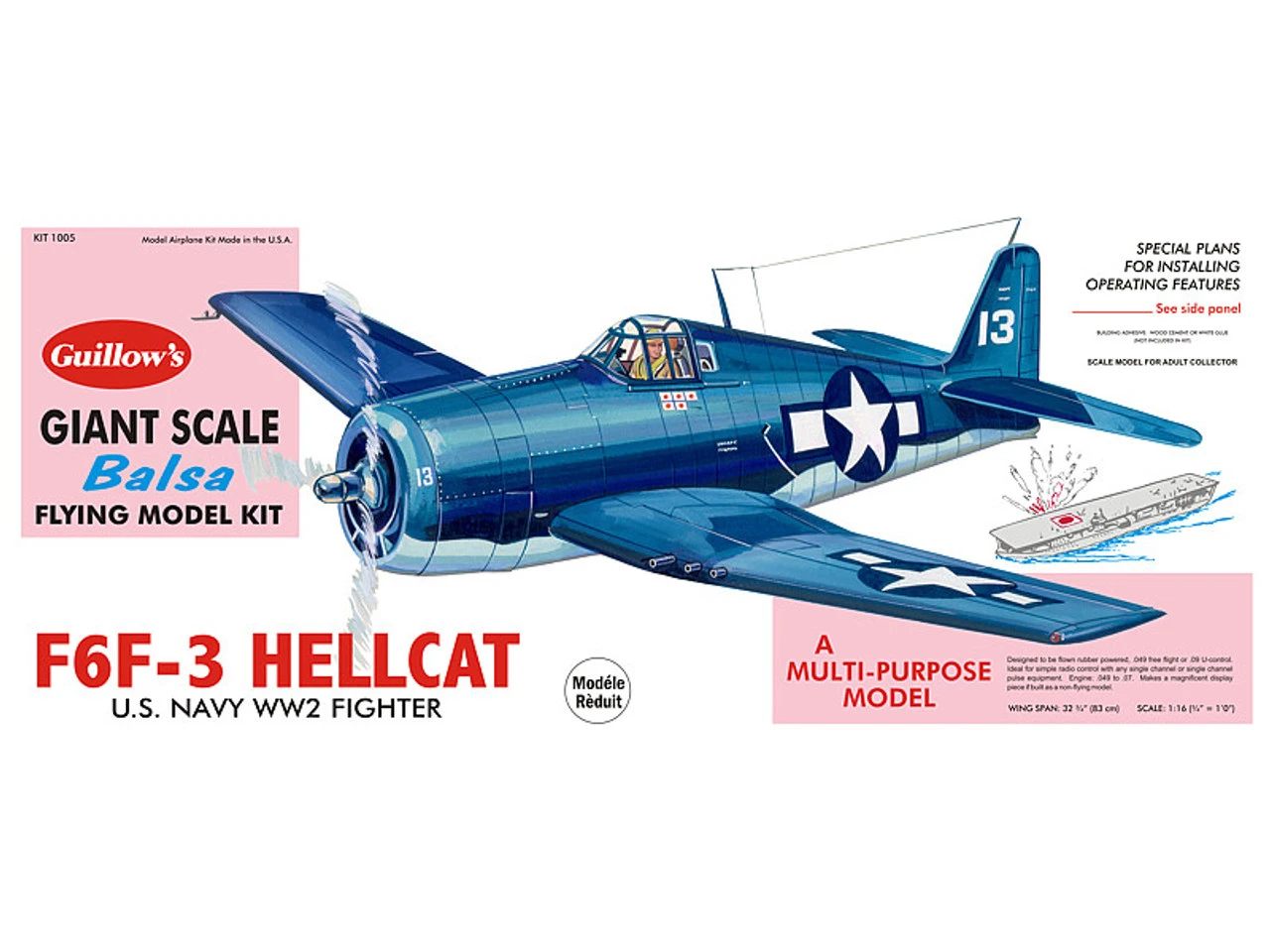 The Guillows 1/16 F6F-3 Hellcat is a balsa wood aircraft model kit from the range manufactured by Guillow.