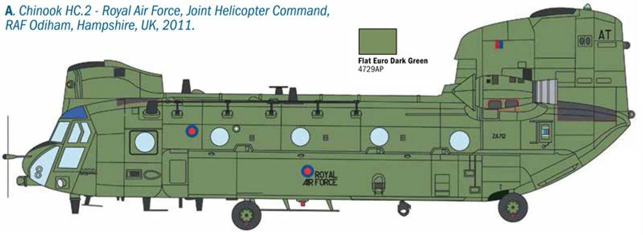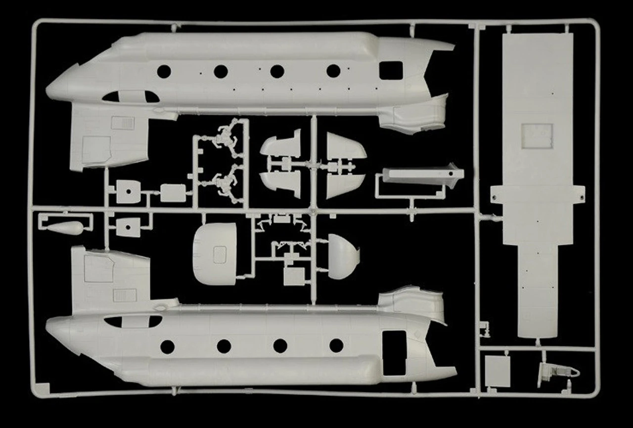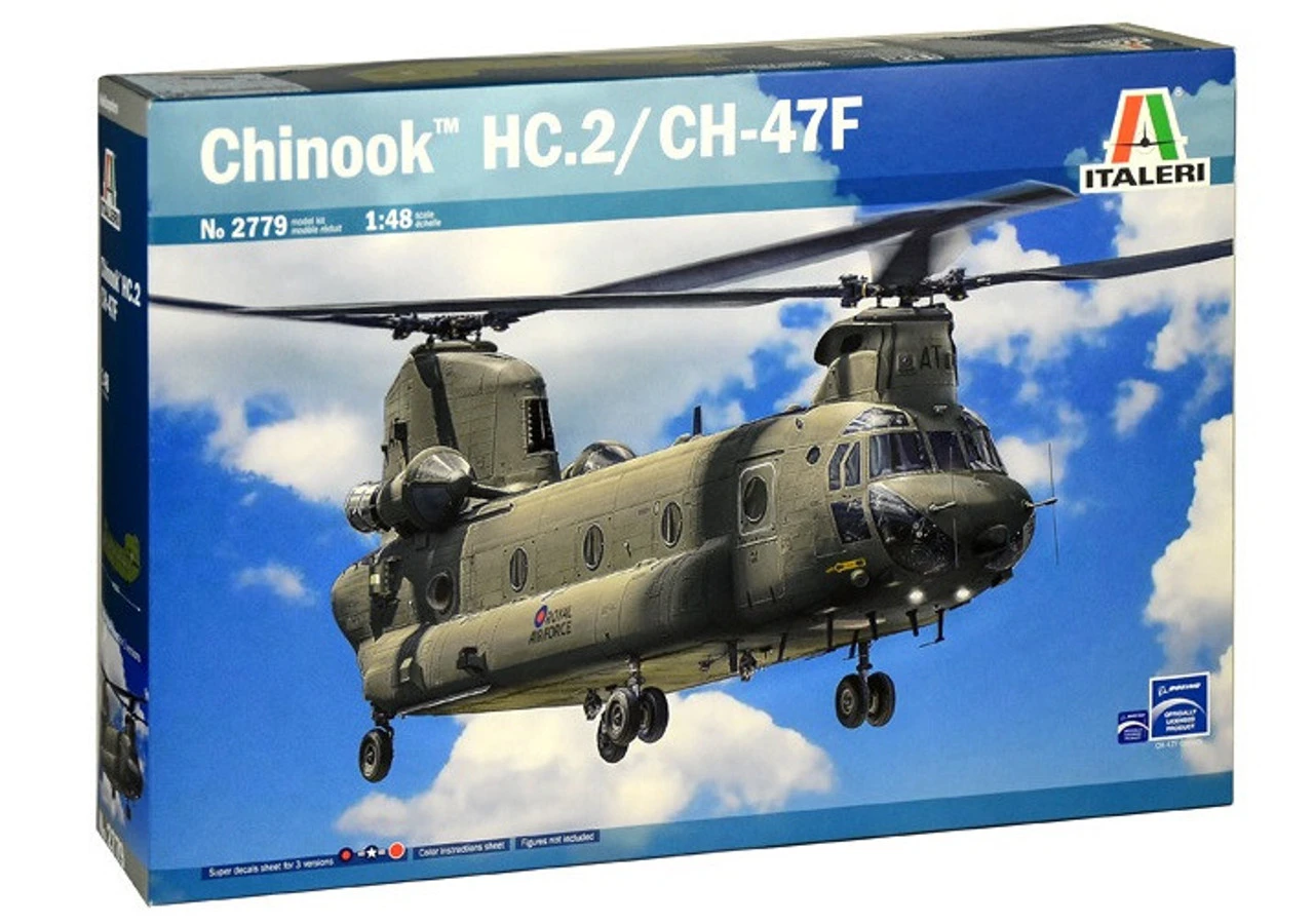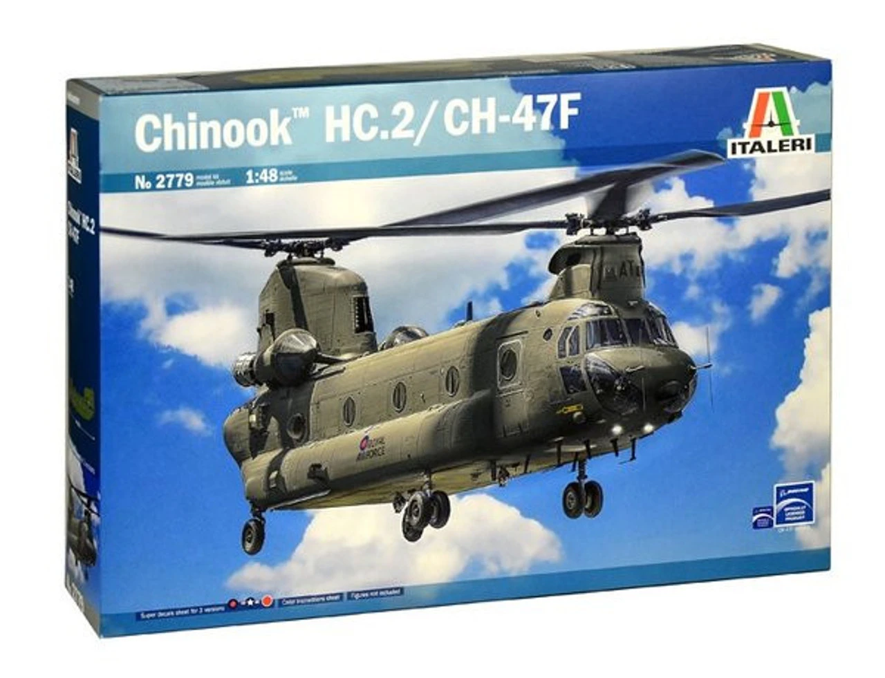 The Italeri 1/48 HC.2/CH-47F Chinook from the plastic aircraft model kit range accurately recreates the real life US helicopter. This model requires paint and glue to complete.
