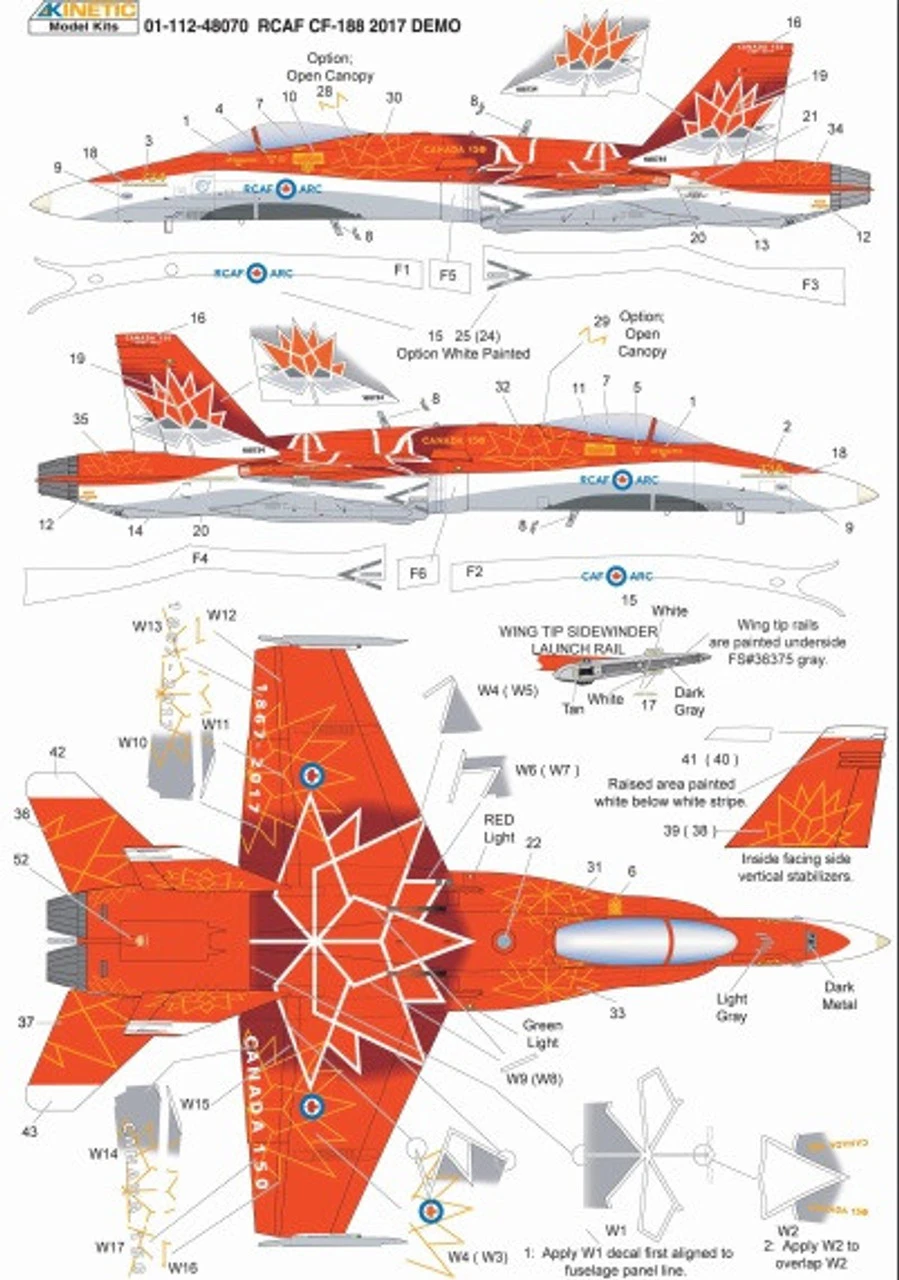 The Kinetic 1/48 McDonnell-Douglas CF-188A RCAF Demo 2017 from the plastic aircraft model kits range accurately recreates the real life American carrier aircraft. This model requires paint and glue to complete.Â
