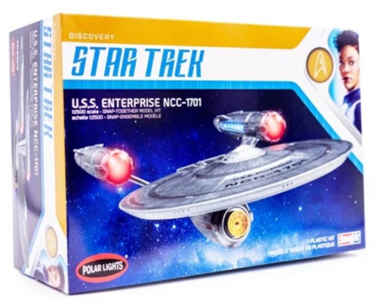 The Polar Lights 1/2500 USS Enterprise NCC-1701 from the plastic Star Trek model kit range accurately recreates the starship from the Star Trek: Discovery television series and motion pictures. This model requires paint to complete.