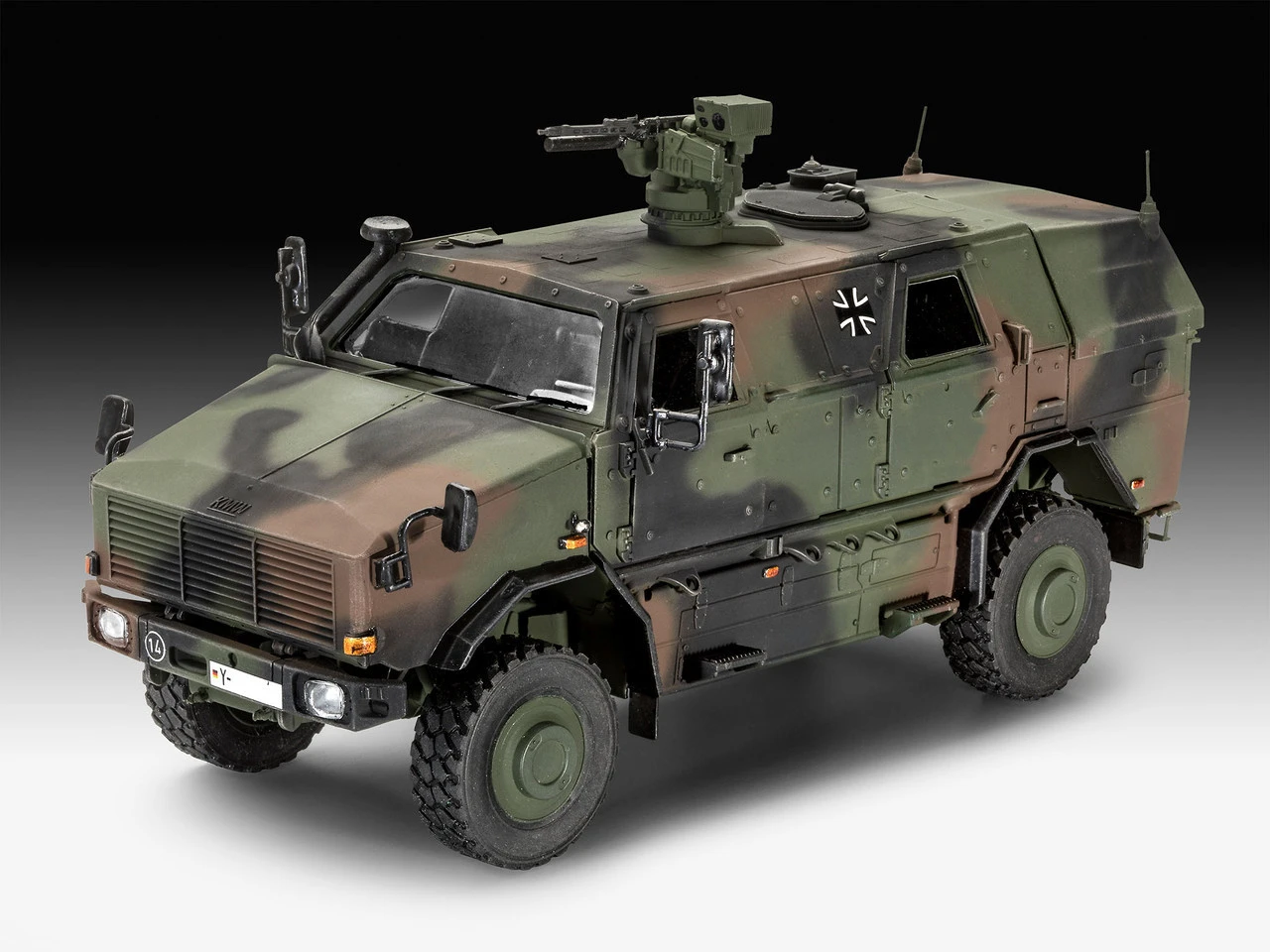 The Revell 1/35 Dingo 2 GE A2.3 PatSi from the plastic model kits range accurately recreates the real life German personel carrier. This model requires paint and glue to complete.