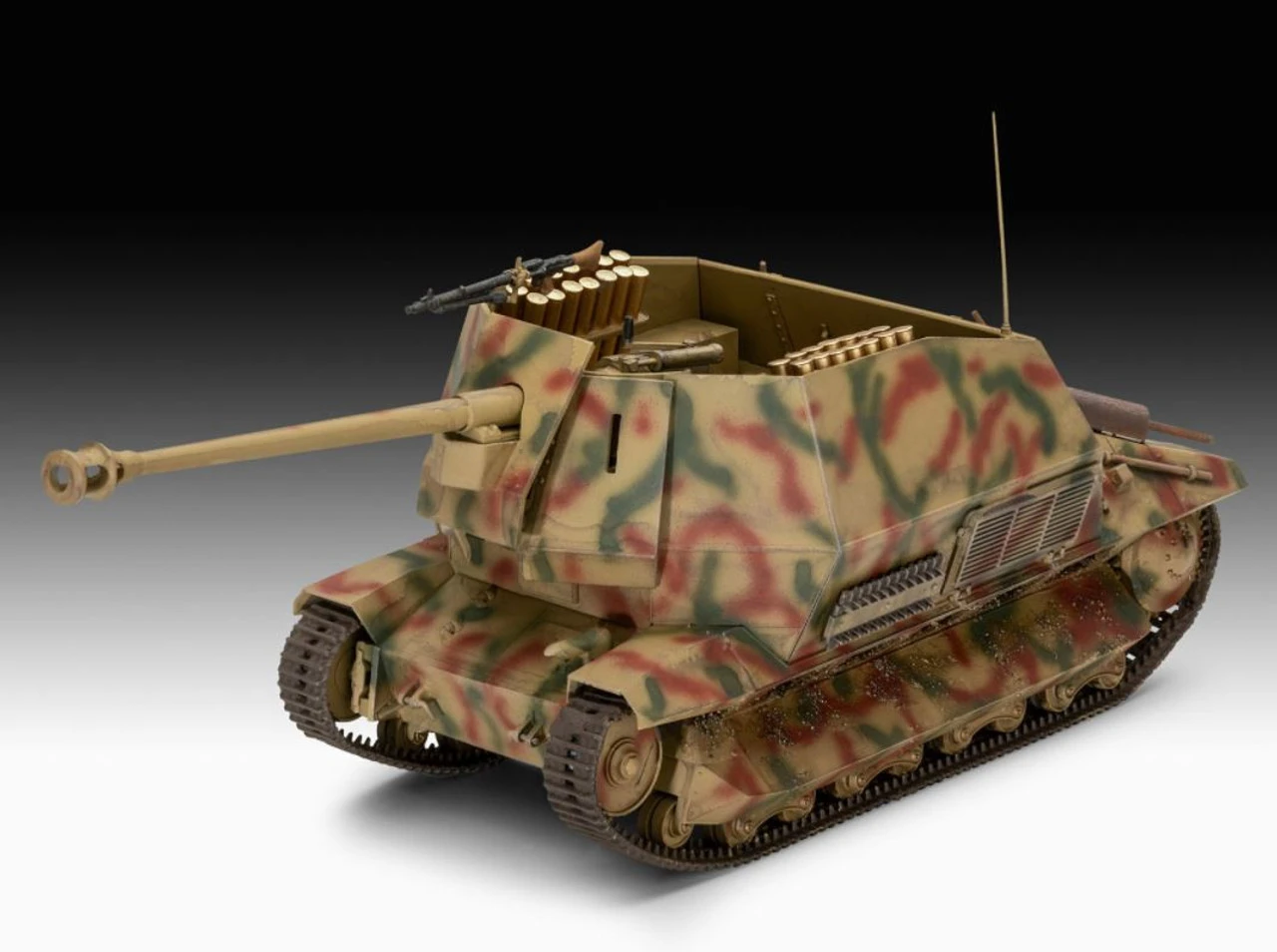 The Revell 1/35 Marder I on FCM 36 Base from the plastic tank model kits range accurately recreates the real life German tank from World War II. This model requires paint and glue to complete.