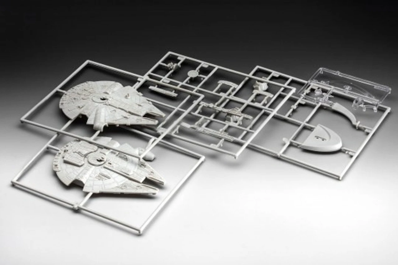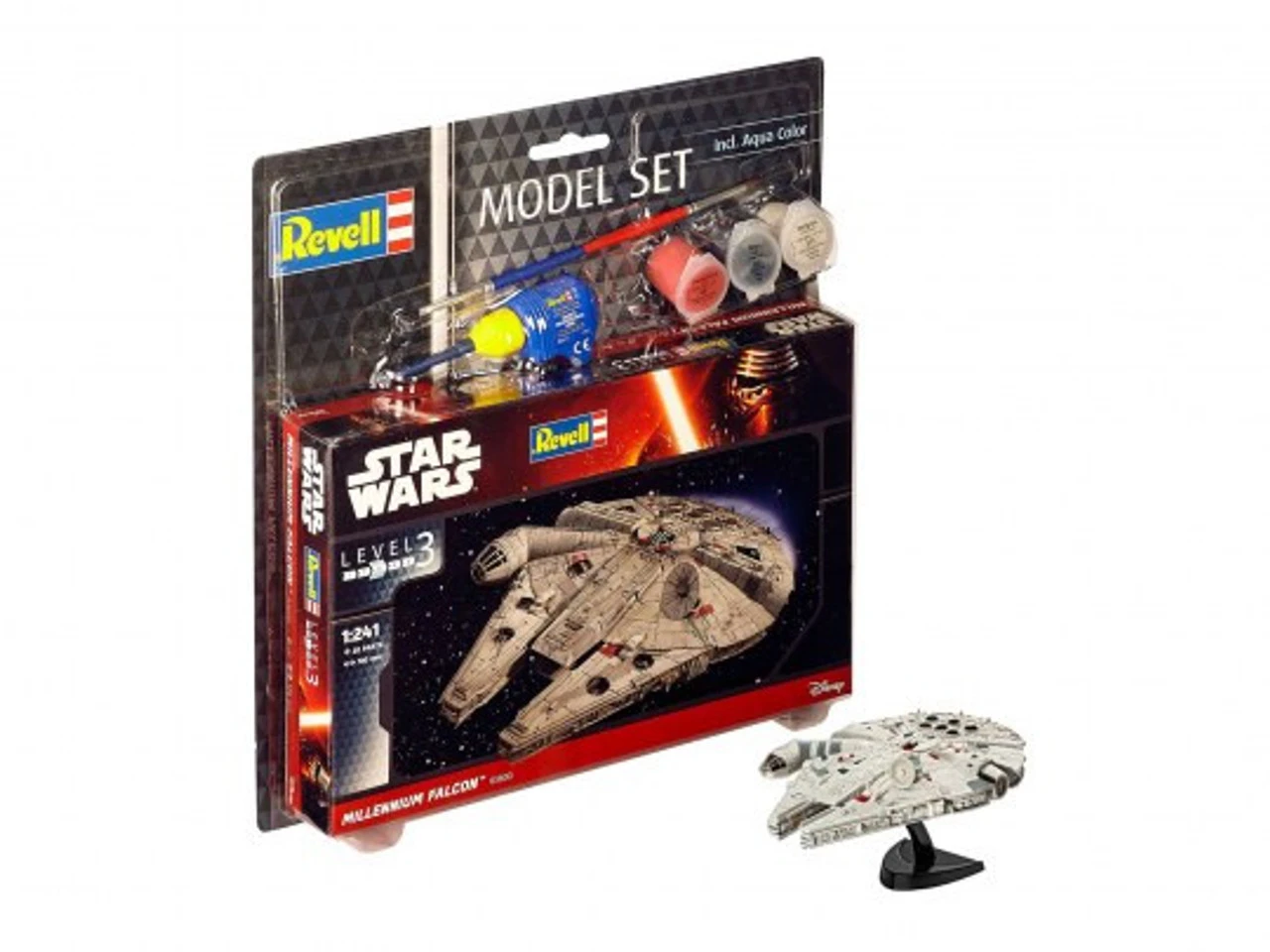 The Revell 1/241 Star Wars Millennium Falcon Starter Set from the plastic Star Wars model range accurately recreates the starship from the Star Wars franchise. This starter set contains the essential paint and glue required to complete the model.