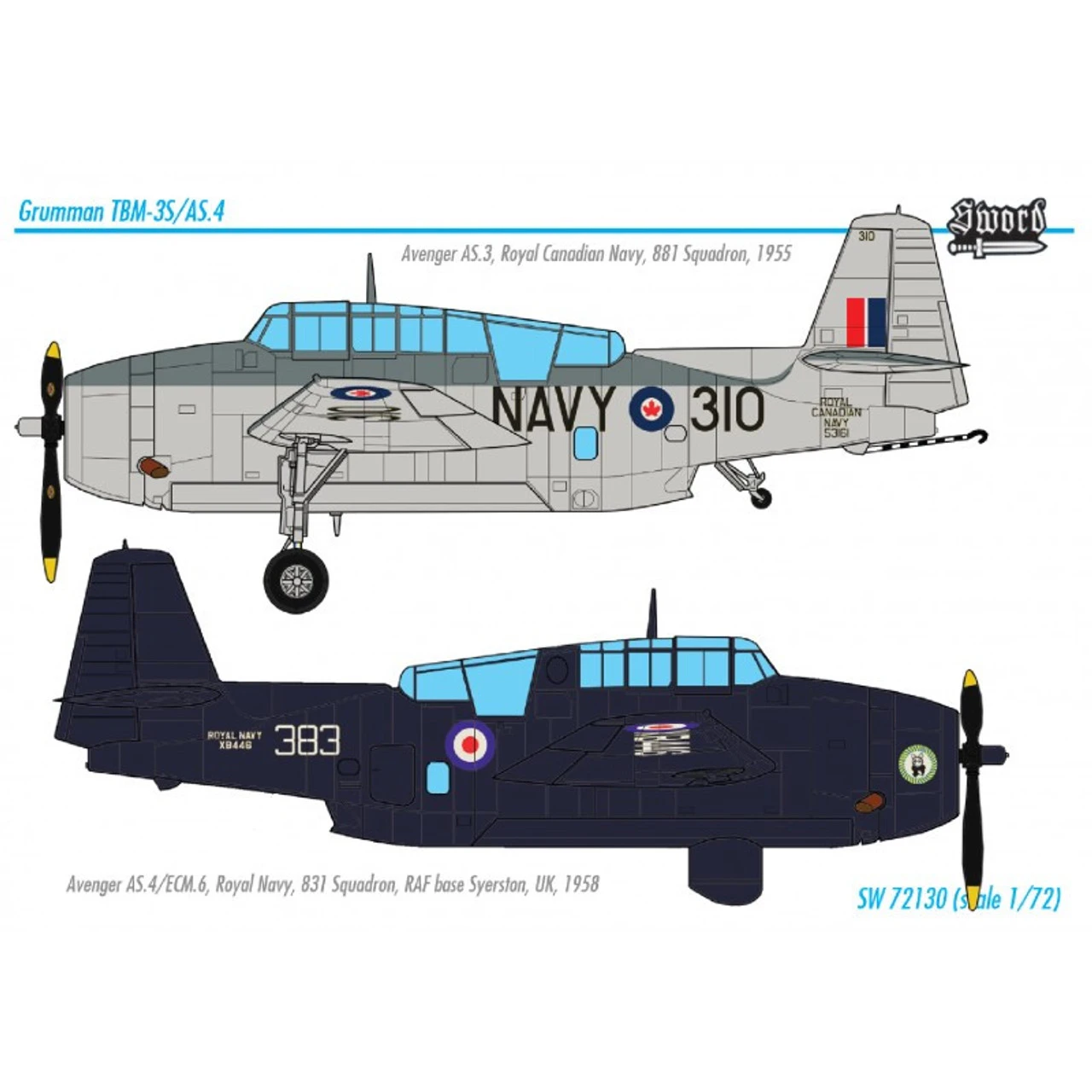 The Sword 1/72 Grumman TBM-3S Avenger AS.4 from the plastic aircraft model kits range accurately recreates the real life US built piston-engined anti-submarine aircraft. This model requires paint and glue to complete.