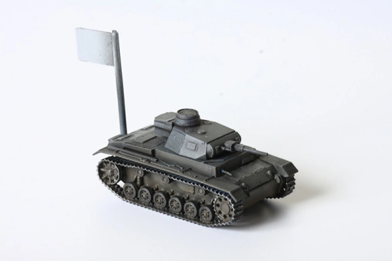 The Zvezda German Pz.Kpfw.III Ausf.G in 1/100 scale from the plastic tank model range accurately recreates the real life German Panzer III medium tank from World War II.