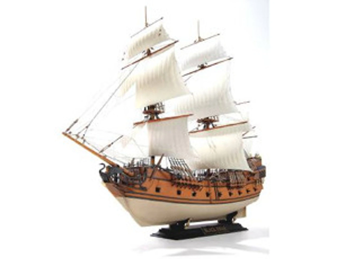 This kit is one of the most detailed sailing ships ever made in plastic. It has an impressive length of 55cm and consists of 880 parts on 17 sprues, sails are made of hard plastic with fine texture. Rigging and stand included.